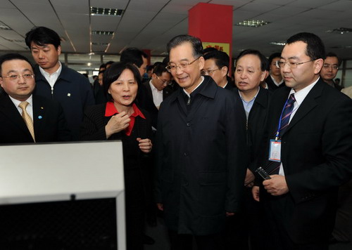 溫家寶總理到中國光谷創(chuàng)意產(chǎn)業(yè)基地視察