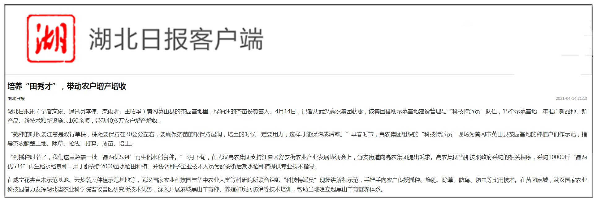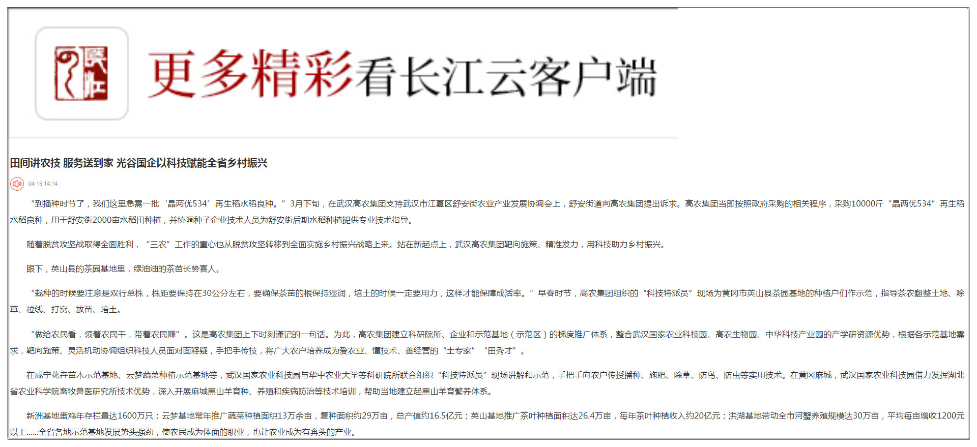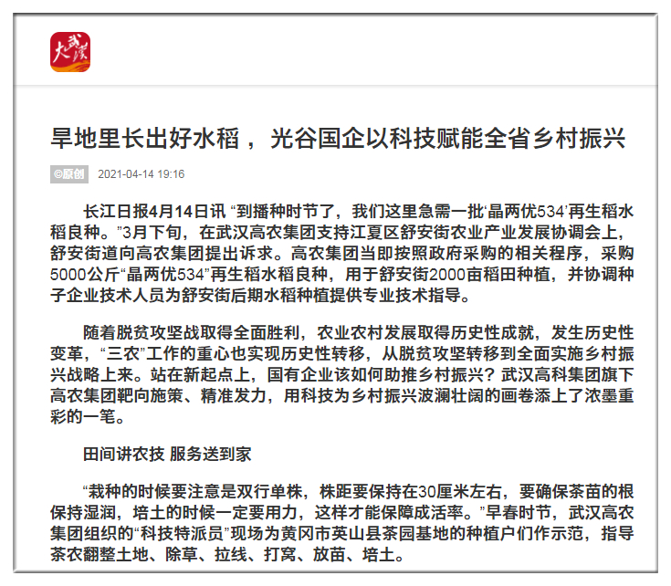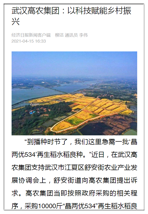 經(jīng)濟(jì)日報(bào):武漢高農(nóng)集團(tuán):以科技賦能鄉(xiāng)村振興