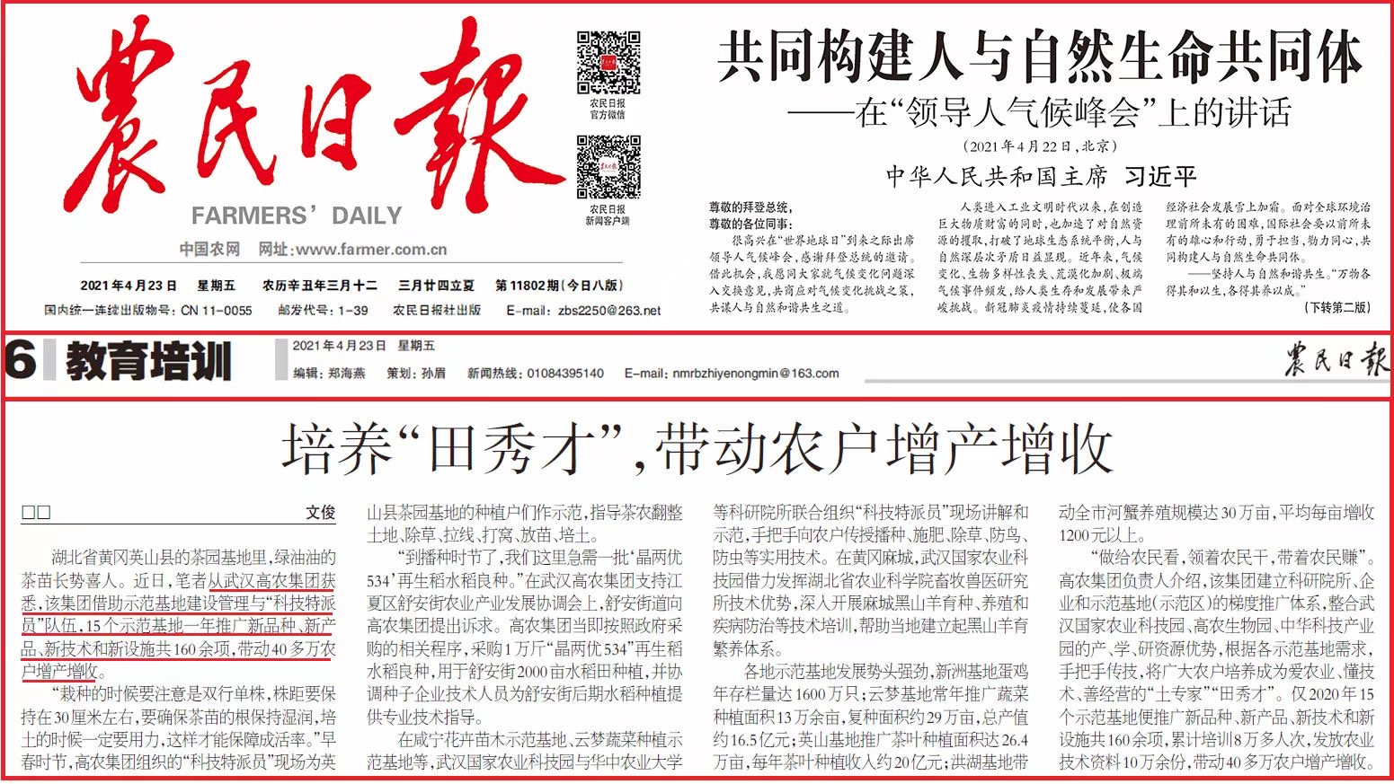 農(nóng)民日?qǐng)?bào):培養(yǎng)“田秀才”,帶動(dòng)農(nóng)戶增產(chǎn)增收