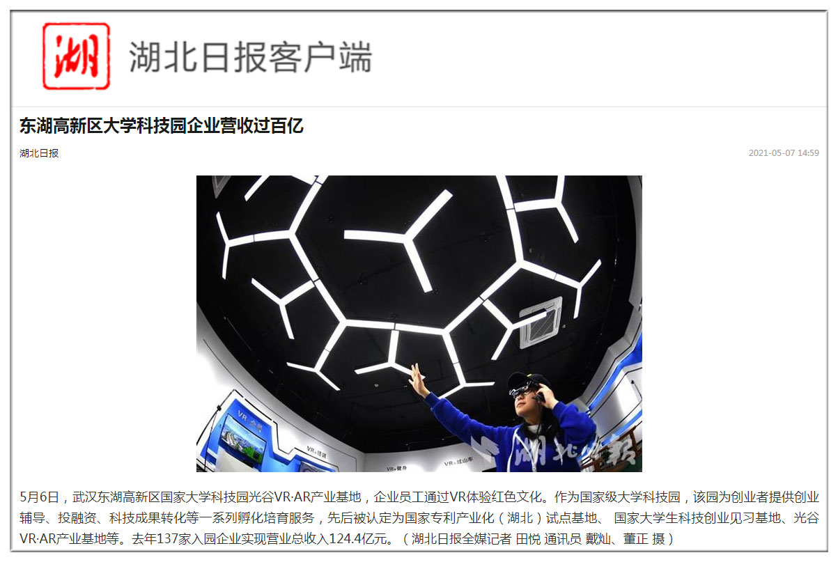 湖北日?qǐng)?bào):東湖高新區(qū)大學(xué)科技園企業(yè)營(yíng)收過(guò)百億