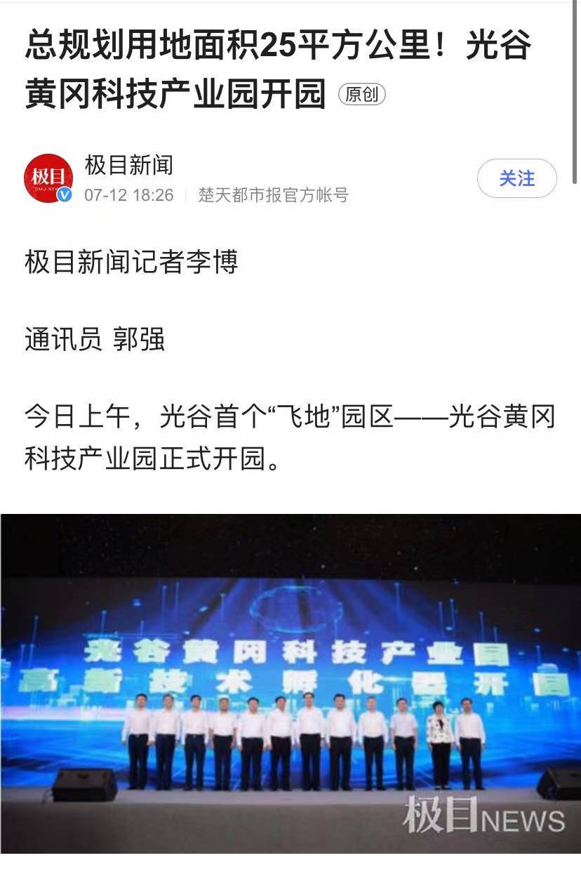楚天都市報極目新聞:總規(guī)劃用地面積25平方公里!光谷黃岡科技產(chǎn)業(yè)園開園