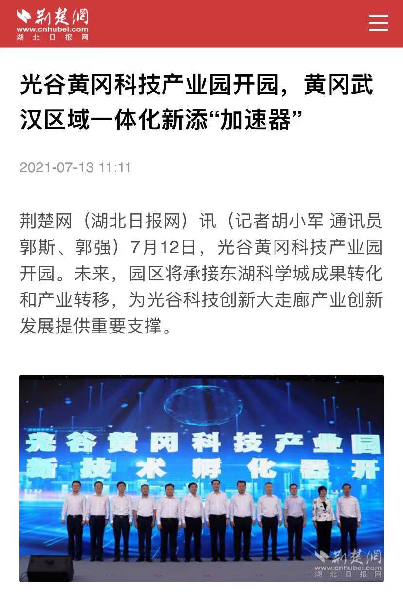 荊楚網(wǎng):光谷黃岡科技產(chǎn)業(yè)園開園,黃岡武漢區(qū)域一體化新添“加速器”