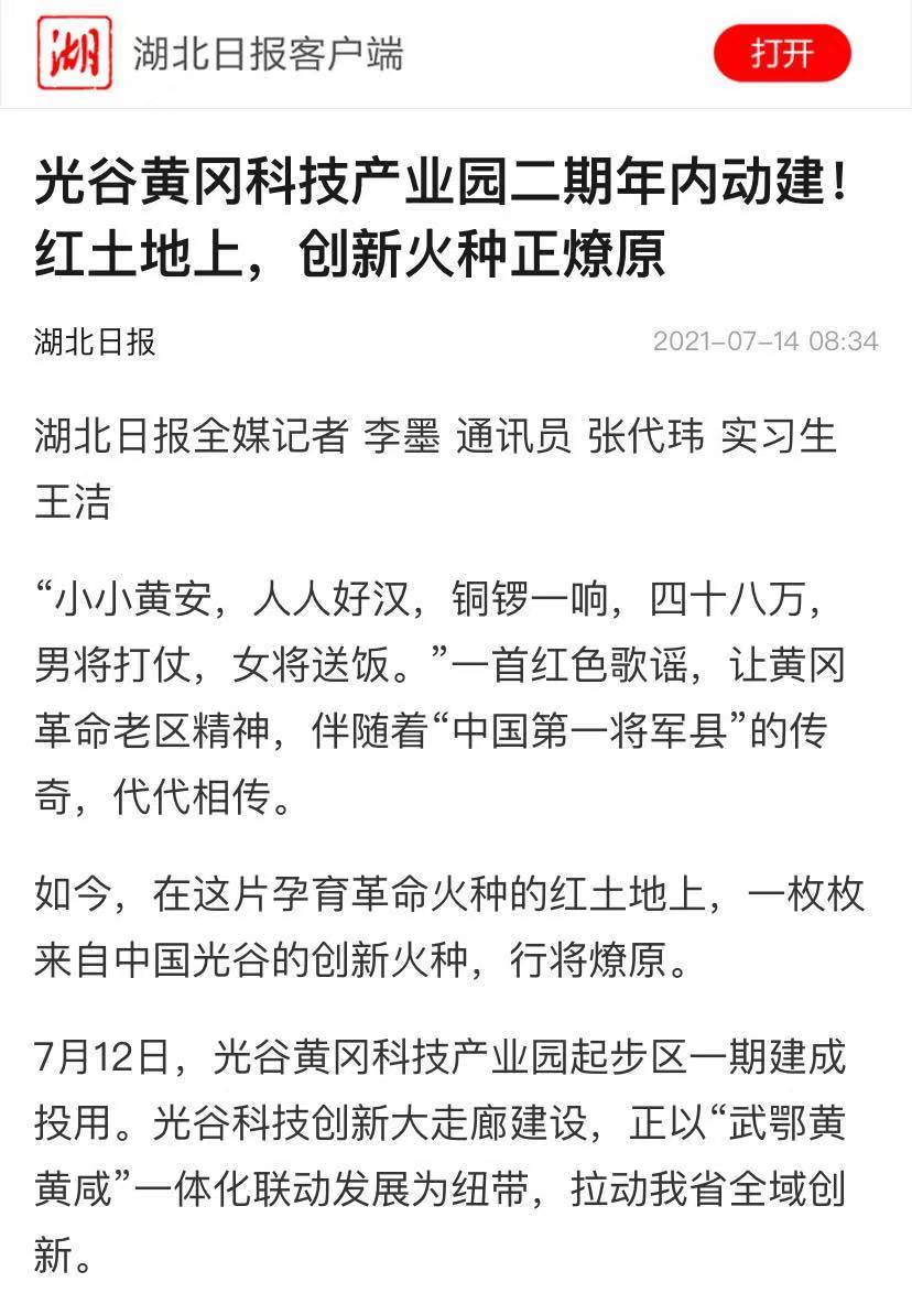 湖北日報客戶端:光谷黃岡科技產(chǎn)業(yè)園二期年內(nèi)動建!紅土地上,創(chuàng)新火種正燎原