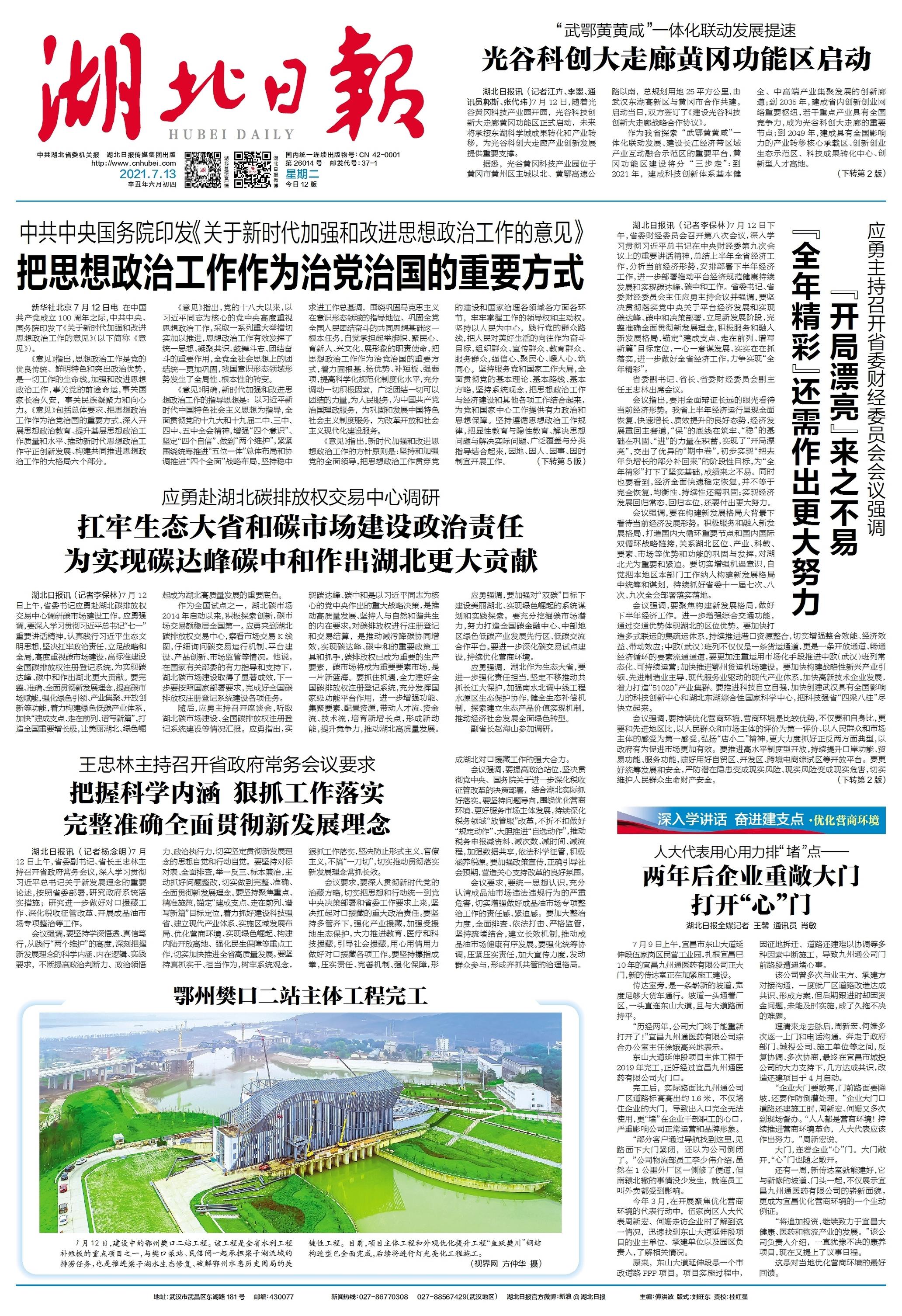 湖北日報:“武鄂黃黃咸”一體化聯(lián)動發(fā)展提速 光谷科創(chuàng)大走廊黃岡功能區(qū)啟動