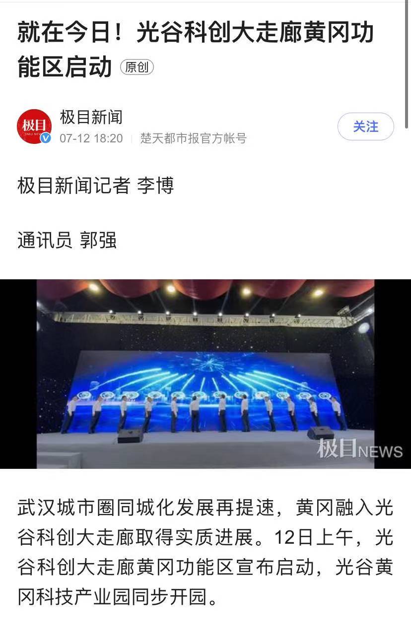 楚天都市報極目新聞:就在今日!光谷科創(chuàng)大走廊黃岡功能區(qū)啟動