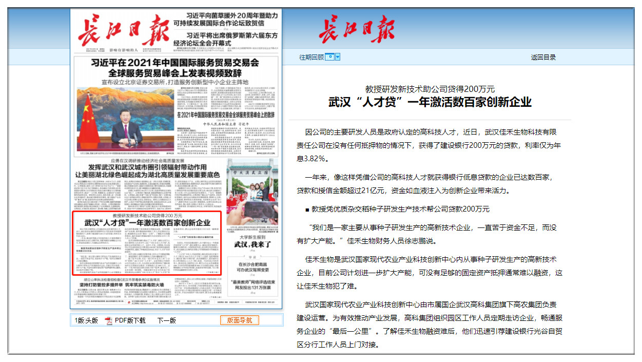 長(zhǎng)江日?qǐng)?bào):教授研發(fā)新技術(shù)助公司貸得200萬(wàn)元 武漢“人才貸”一年激活數(shù)百家創(chuàng)新企業(yè)