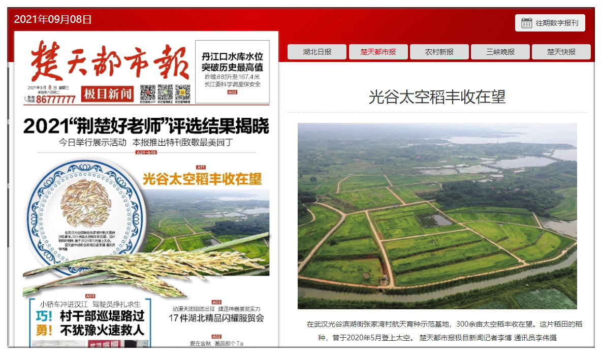 楚天都市報:光谷太空稻豐收在望