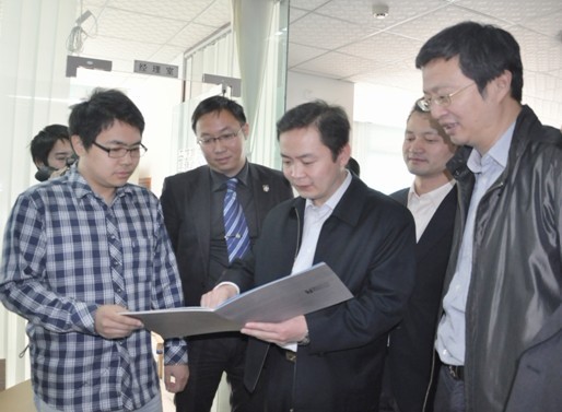 杜部長一行參觀了科技園展廳,對華中科技大學(xué)國家大學(xué)科技園十年取得的輝煌成就予以肯定。隨后視察了大學(xué)生創(chuàng)業(yè)基地,杜部長對大學(xué)生創(chuàng)業(yè)企業(yè)武漢若比特機(jī)器人有限公司的代步“羅賓車”及武漢榮耀智能科技有限責(zé)任公司的“櫥窗投影”軟件展示表示了濃厚的興趣,并對大學(xué)生自主創(chuàng)業(yè)創(chuàng)新的能力給予了高度評價。