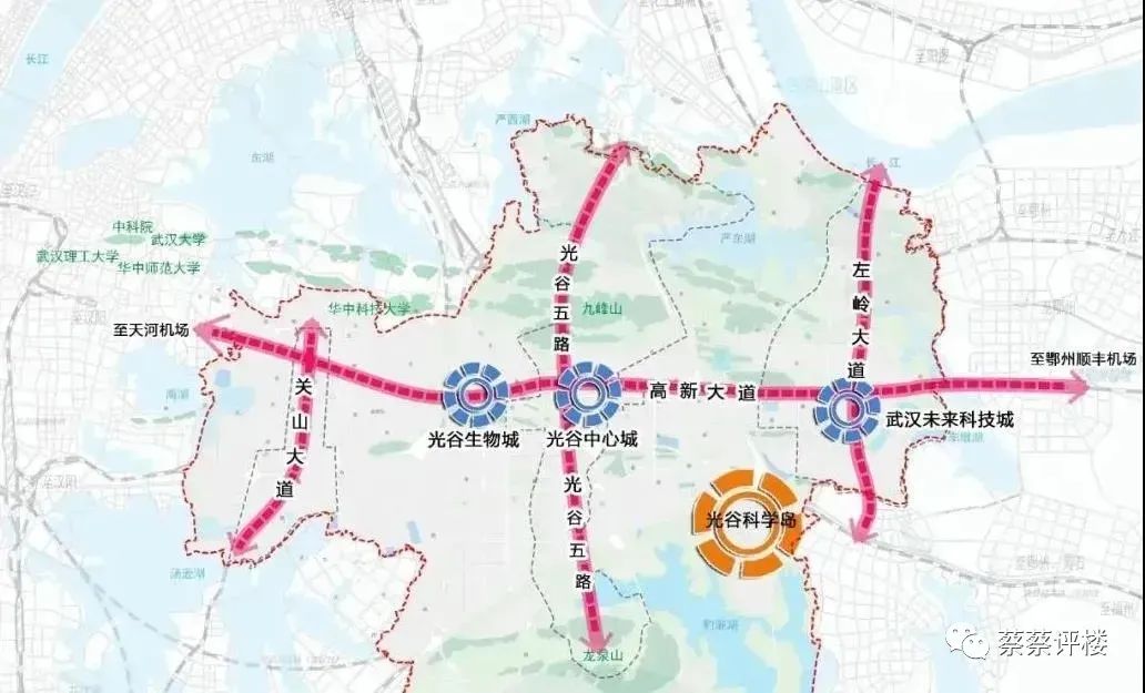 而區(qū)域之發(fā)展,在于常變常新。隨著老光谷布局趨于飽和,光谷發(fā)展進入東進時代。早在2019年2月東湖高新區(qū)召開工作會議中,便提出要高起點建立“東部副中心”,加快推進“一主兩副四組團”的城區(qū)空間布局,而“一主”是光谷中心城,“兩副”則為魯巷副中心和未來城副中心。